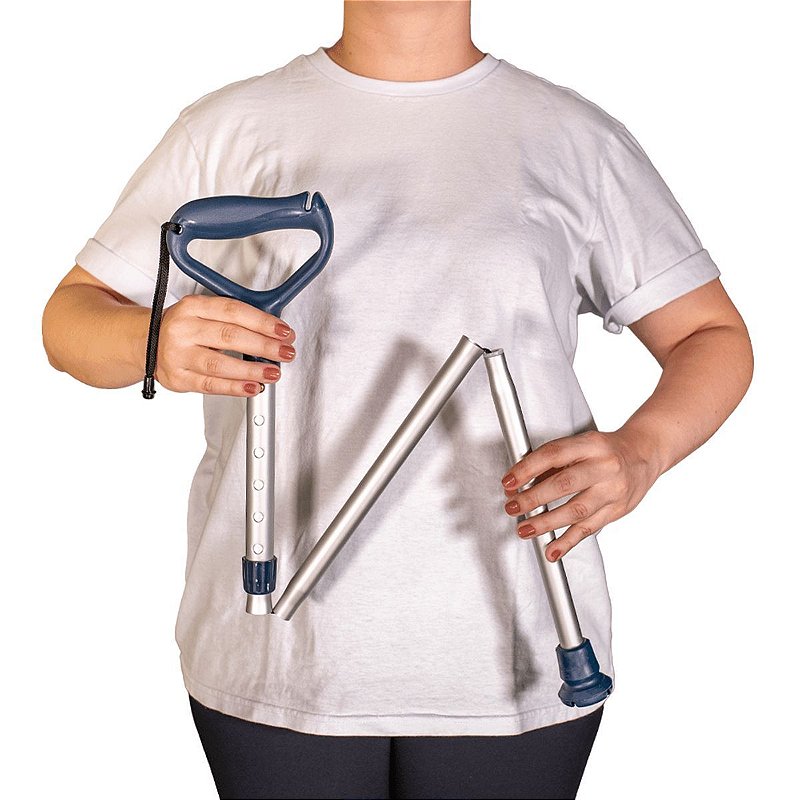 Disponível nas cores azul escuro, grafite, lilás escuro, marrom médio e preta, a bengala é vendida unitariamente, em tamanho único ajustável. Suporta até 100 kg. As medidas do produto são: altura mínima de 83 cm e altura máxima de 96 cm, com peso aproximado de 445 gramas. A embalagem tem dimensões de aproximadamente 30 x 18 x 5 cm e peso total de 600 gramas, sendo compacta e prática para transporte e armazenamento.
