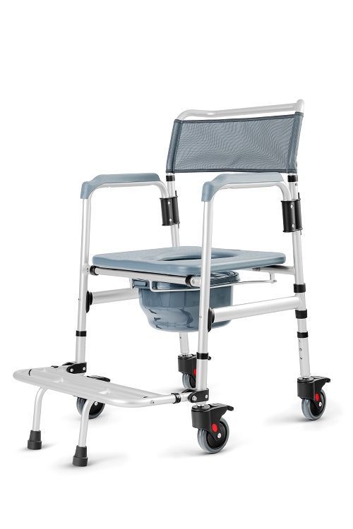 CADEIRA DE BANHO DE ALUMÍNIO 135KG PROJETADA PARA FACILITAR A HIGIENIZAÇÃO E SERVIR COMO APOIO DURANTE AS NECESSIDADES FISIOLÓGICAS DE PESSOAS COM DÉFICIT DE EQUILÍBRIO, FRAQUEZA MUSCULAR OU GRANDE PERDA DE MOBILIDADE. POSSUI UMA ESTRUTURA DE TUBO ESTRUTURAL E APOIO PARA OS PÉS EM ALUMÍNIO LEVE E ANODIZADO PROPORCIONANDO DURABILIDADE E RESISTÊNCIA. O ASSENTO E BALDE, E OS APOIOS PARA OS BRAÇOS SÃO FEITOS DE POLIETILENO, APOIO NAS COSTAS DE REDE DE NYLON, ENQUANTO AS RODAS COM TRAVAS DE POLIPROPILENO COM BORRACHA TERMOPLÁSTICA. ESTA CADEIRA DE BANHO É DESMONTÁVEL, FACILITANDO O ARMAZENAMENTO E O TRANSPORTE. SUPORTA ATÉ 135 KG DE PESO, PROPORCIONANDO SEGURANÇA E COMODIDADE DURANTE A HIGIENIZAÇÃO.