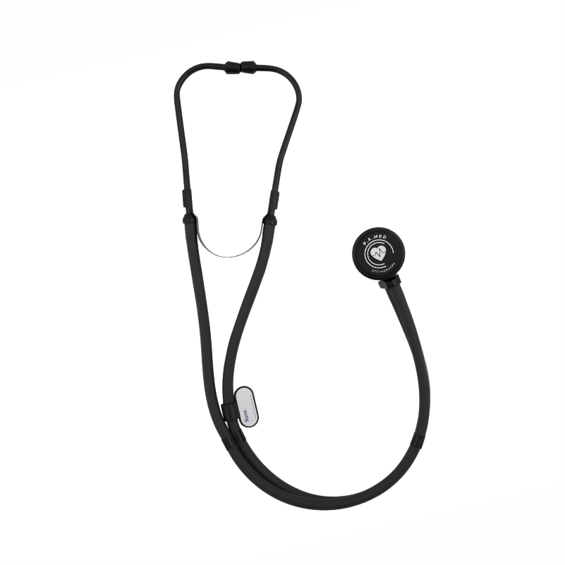 Estetoscópio Rappaport Black da P.A. MED indicado para ausculta cardíaca e pulmonar. Equipamento com tubo duplo para ausculta mais precisa e eficaz, com 5 diferentes tipos de auscultadores usados para detectar sons de baixa e alta frequência com melhor distinção.