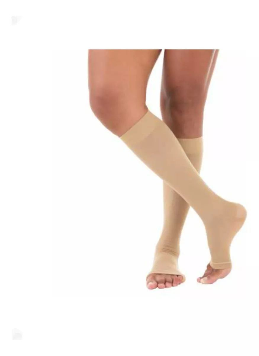 O modelo 3/4 (AD) cobre até abaixo do joelho, oferecendo suporte ideal para a circulação sanguínea. A compressão de 30-40mmHg é indicada para casos avançados de insuficiência venosa e recuperação pós-cirúrgica.