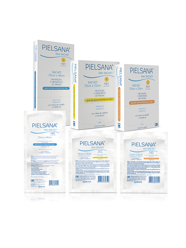 A Gaze de Rayon Pielsana em sachê (7,5 × 7,5 cm com 3 ml) é um curativo primário estéril, composto por fibra de rayon impregnada em uma solução ativada com Ácidos Graxos Essenciais (A.G.E), Triglicerídeos de Cadeia Média (T.C.M), Vitaminas A e E, óleo de copaíba e óleo de melaleuca. Isso confere ao curativo propriedades hidratantes, regeneradoras, anti-inflamatórias e protetoras, auxiliando na cicatrização de feridas traumáticas ou crônicas, mesmo com perda tecidual superficial ou total.