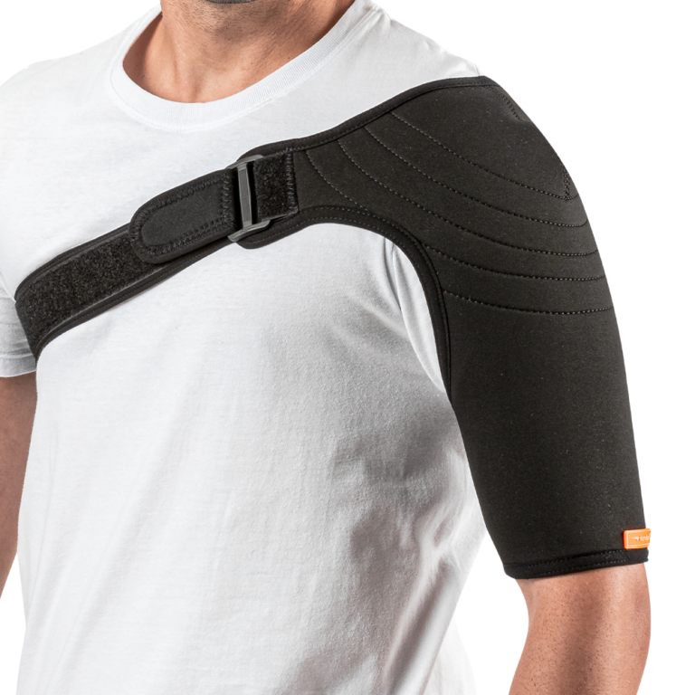 Sua estrutura proporciona compressão ajustável e estabilidade à articulação, retendo calor terapêutico que pode ajudar no alívio da dor. O ajuste se dá por meio de alças com fechos aderentes, permitindo adaptação anatômica e uso bilateral (servindo tanto no ombro direito quanto no esquerdo).
